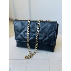 •Correa larga de cuero regulable combinado con cadena de zamarra dorada•